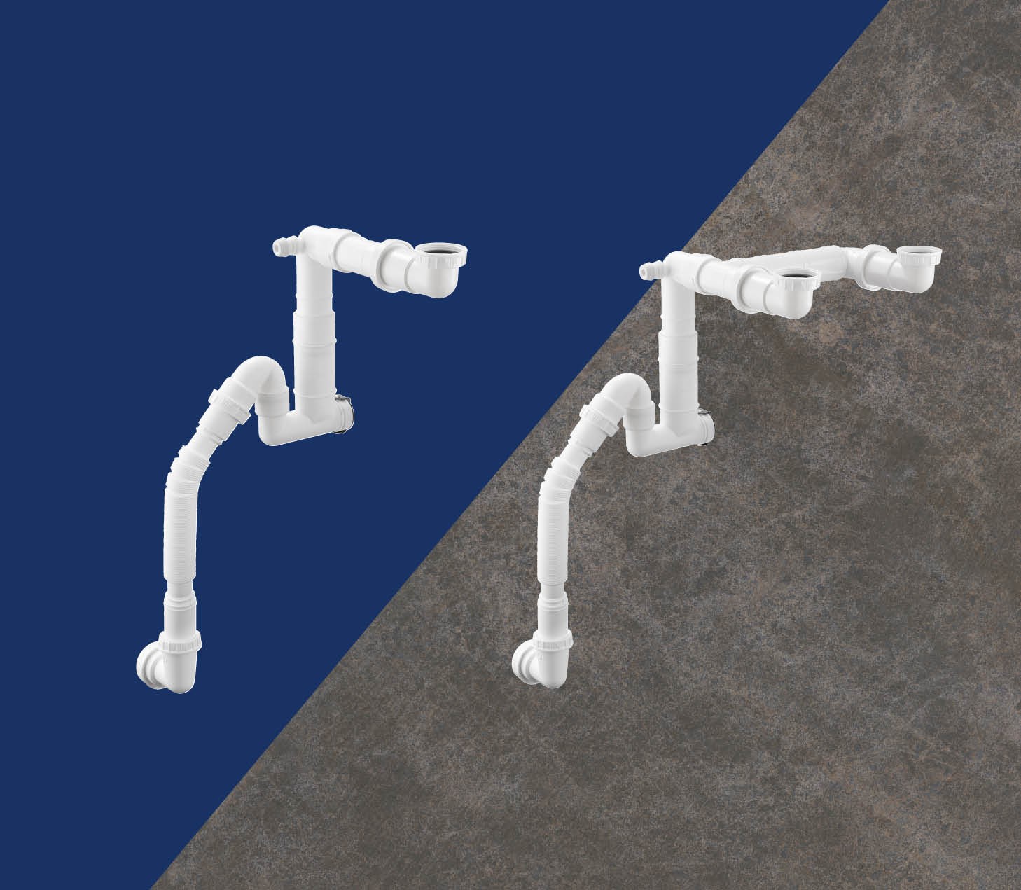 - Includes 2 discharge hoses for washing machine and dishwasher connections